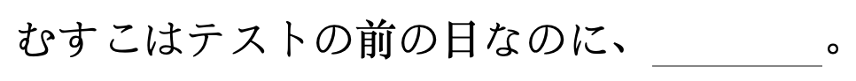 ตัวเลือกข้อ 2. ถูก เพราะ “ทั้งที่เป็นวันก่อนวันสอบ ลูกชายก็เล่นอยู่จนดึก” เป็นการใช้ のにแสดงความขัดแย้ง