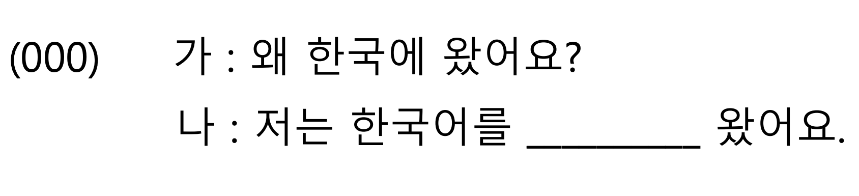 โจทย์ : 가 ถามว่า “มาเกาหลีทำไมคะ” 나 ตอบว่า “ฉันมาเกาหลี…..” จึงเห็นได้ว่าประโยคนี้ต้องการถามถึงวัตถุประสงค์